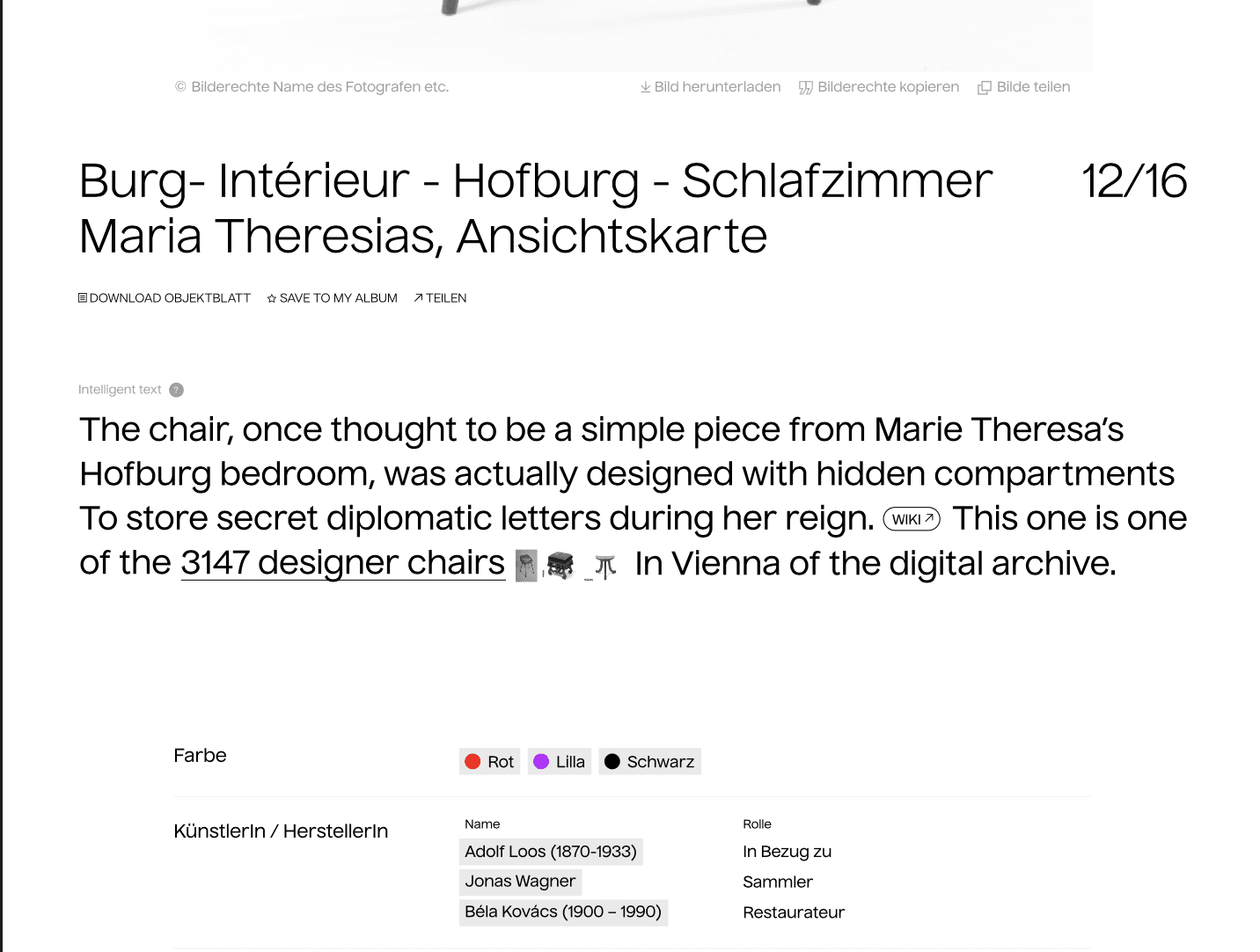 Wien Museum Online Collection. Since 2022, Wien Museum has been hard at work digitizing a massive archive of 180,000+ objects, but the interface made it feel more like a systematic archive than a living collection.